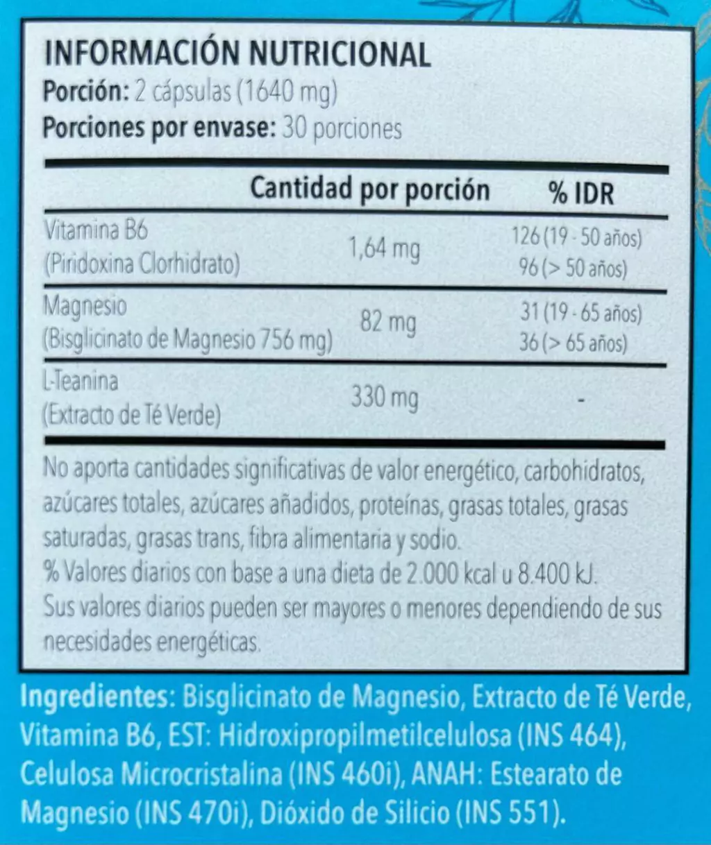 Como verás, la combinación de Teaniana con magnesio funcionan sinérgicamente, para mejorar la relación Gaba/glutamato, evitando que el glutamate supere al Gaba, esto crea el estado de relajación sin sedación que tan necesario es en la vida diaria, con todos los factores estresantes que vivimos día a día.
